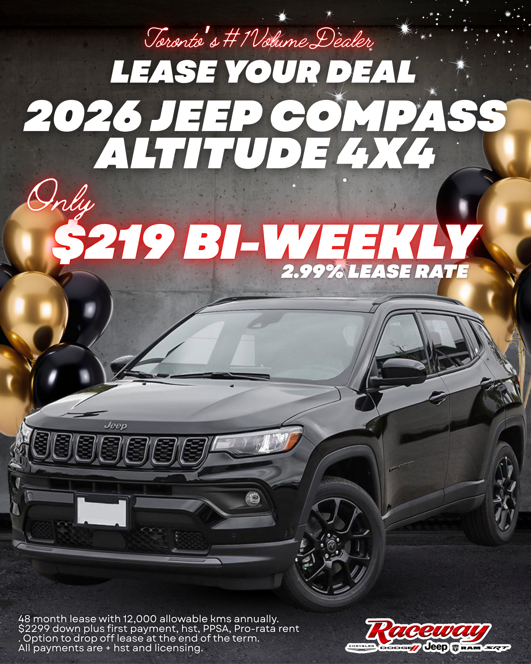 January is the perfect time to save at Raceway, your local dealership serving Toronto, Etobicoke, Mississauga, and Brampton. For a limited time, we’re offering exclusive January specials on new Jeep Wrangler, Jeep Compass, Jeep Grand Cherokee, Ram 1500, and Dodge Durango models. Whether you’re looking for a winter-ready SUV, a powerful pickup truck, or a versatile family vehicle, Raceway has competitive pricing and seasonal incentives designed for GTA drivers. Conveniently located and trusted by customers across the Greater Toronto Area, we make it easy to upgrade your vehicle with flexible financing options and a transparent, no-pressure buying experience. Shop January vehicle specials near Toronto today before incentives and inventory are gone.
